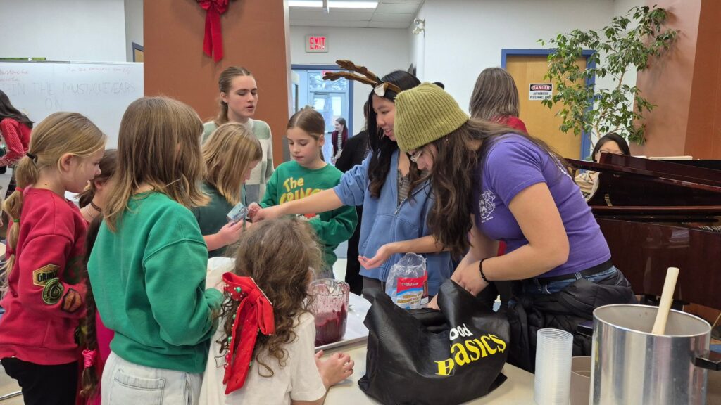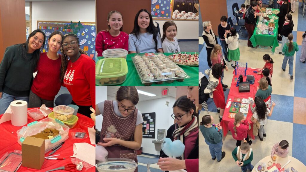 Following our much-anticipated tradition, students from every grade were invited to join the fun, support our Clubs and Student Council, do some budget-friendly Christmas shopping, and enjoy the flurry of holiday excitement together. Club leaders and members went all out to make festive stations to sell their wares: stationary (Yearbook Club), homemade all-natural beeswax candles (Art Club), contest-winning Christmas postcards and bookmarks (Visual Arts class), cotton candy and hot chocolate (Student Council), used books (Book Club), smoothies (Athletics Department), decorating gingerbread men (Baking Club), bake sale (US Play), Connect 4 Games with banana bread prizes (Leaders of Tomorrow), and popcorn (Spanish Club).